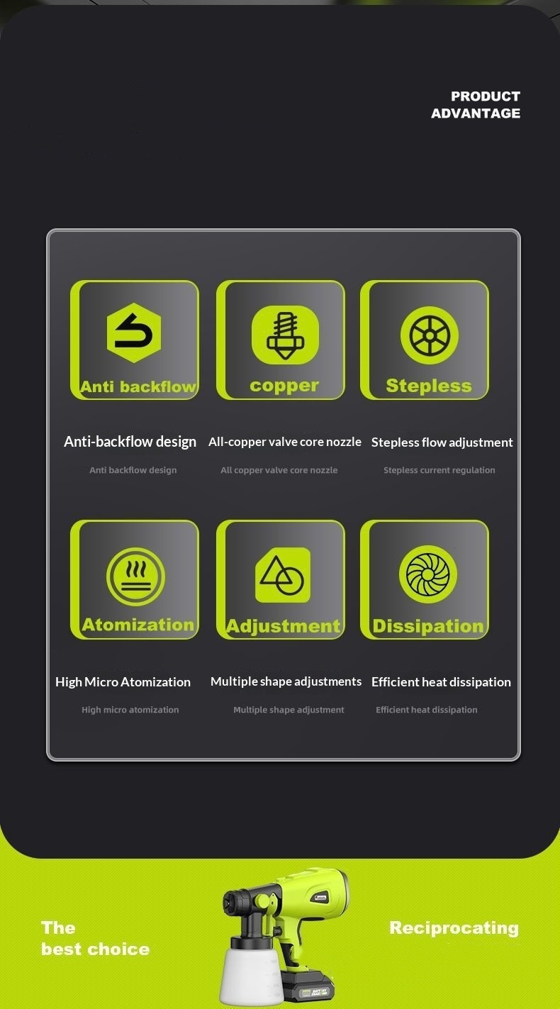 Specifications: New stepless-speed electric spray gun—3 nozzles [plastic tank]