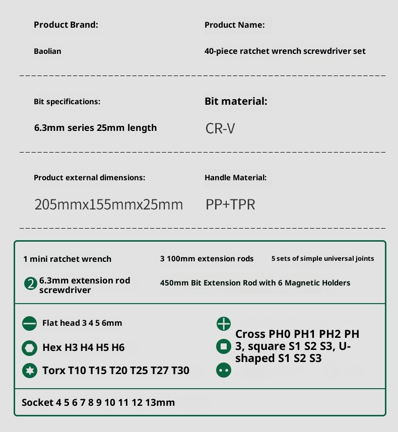 Magic Box Bits Set Ratchet Wrench Screwdriver Set