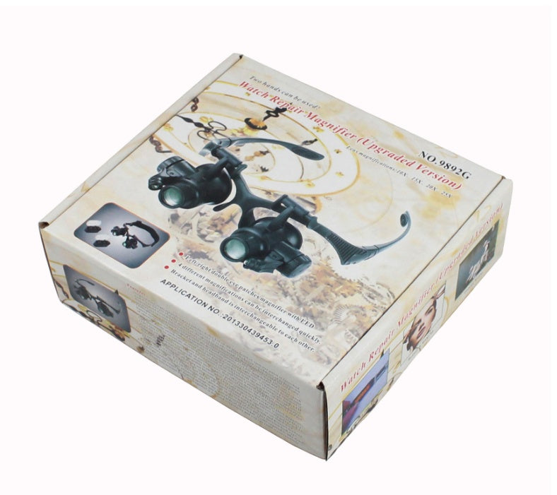 Double left and right eye magnifier / magnifier patches with adjustable LED.